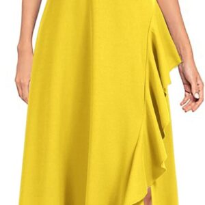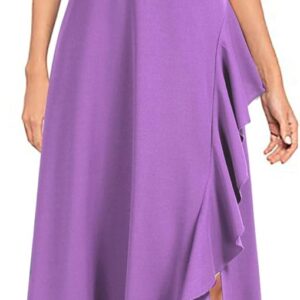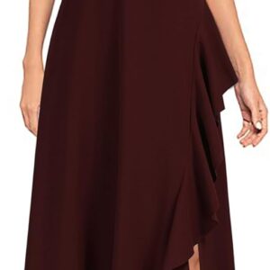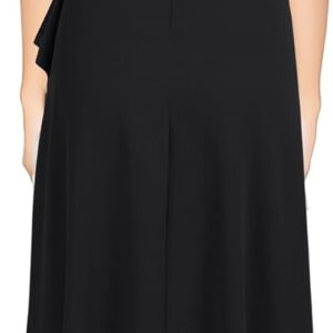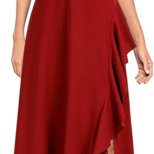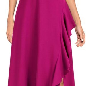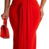 - The left side of the skirt is decorated with ruffles and has a slit.