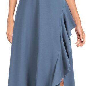 The ruffles and slit on the left side of the skirt create a dynamic and flowing effect when walking, highlighting a woman's elegant charm.