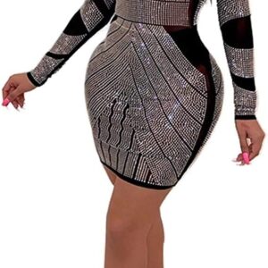 Women Long Sleeve Birthday Dresses Sexy hot Diamond Process Sexy Dress Party Club Night Dress\u2026