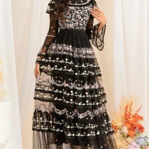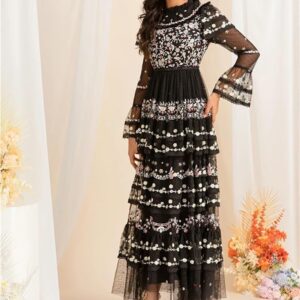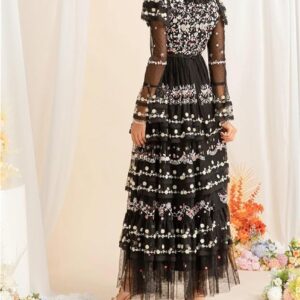 Women’s Embroidered Sequin Long Dress Holiday Party Evening Gown Elegant Dress(XX-L) Multi