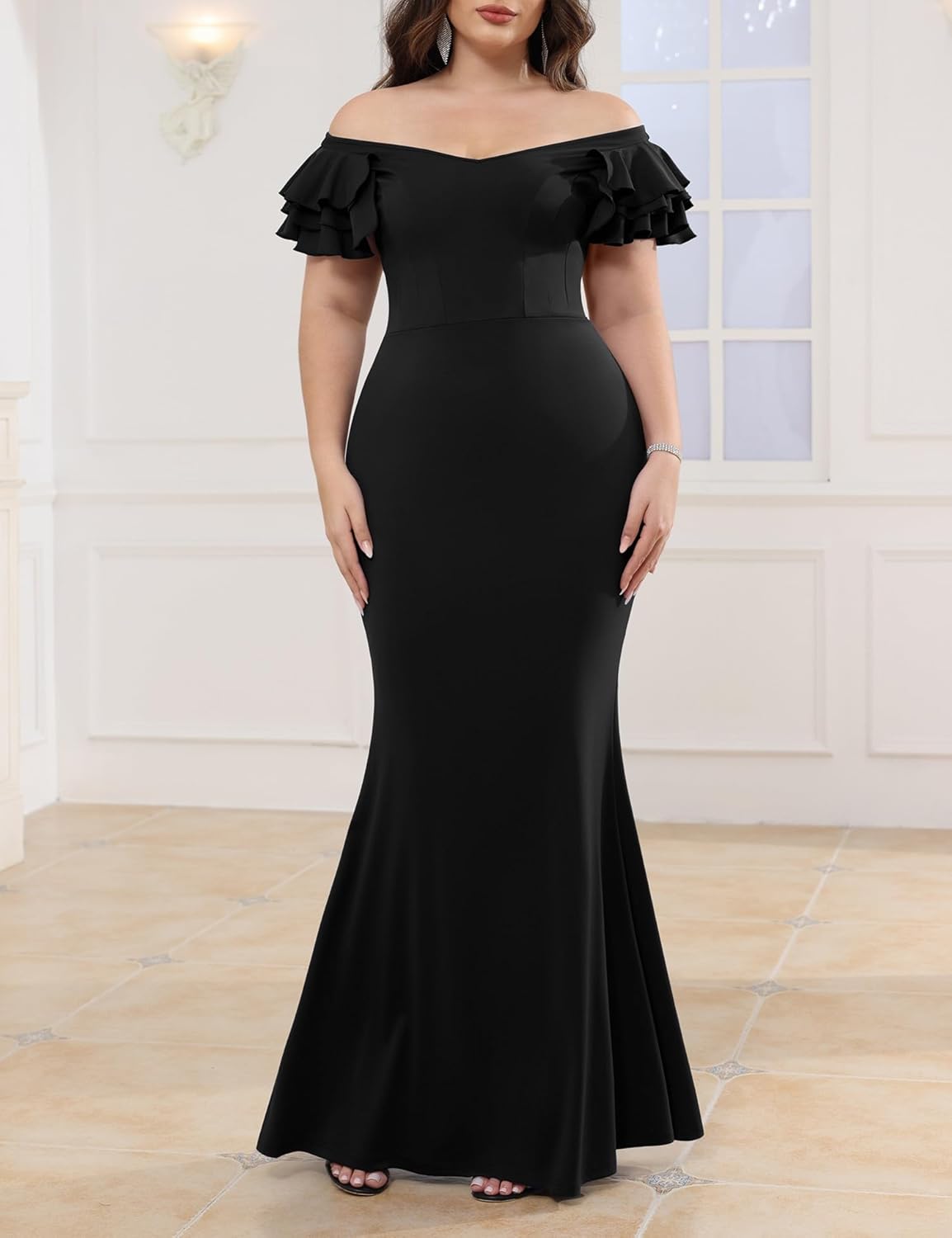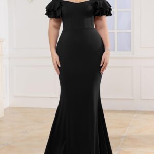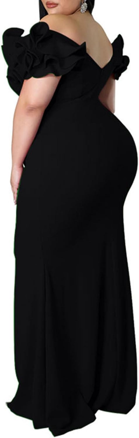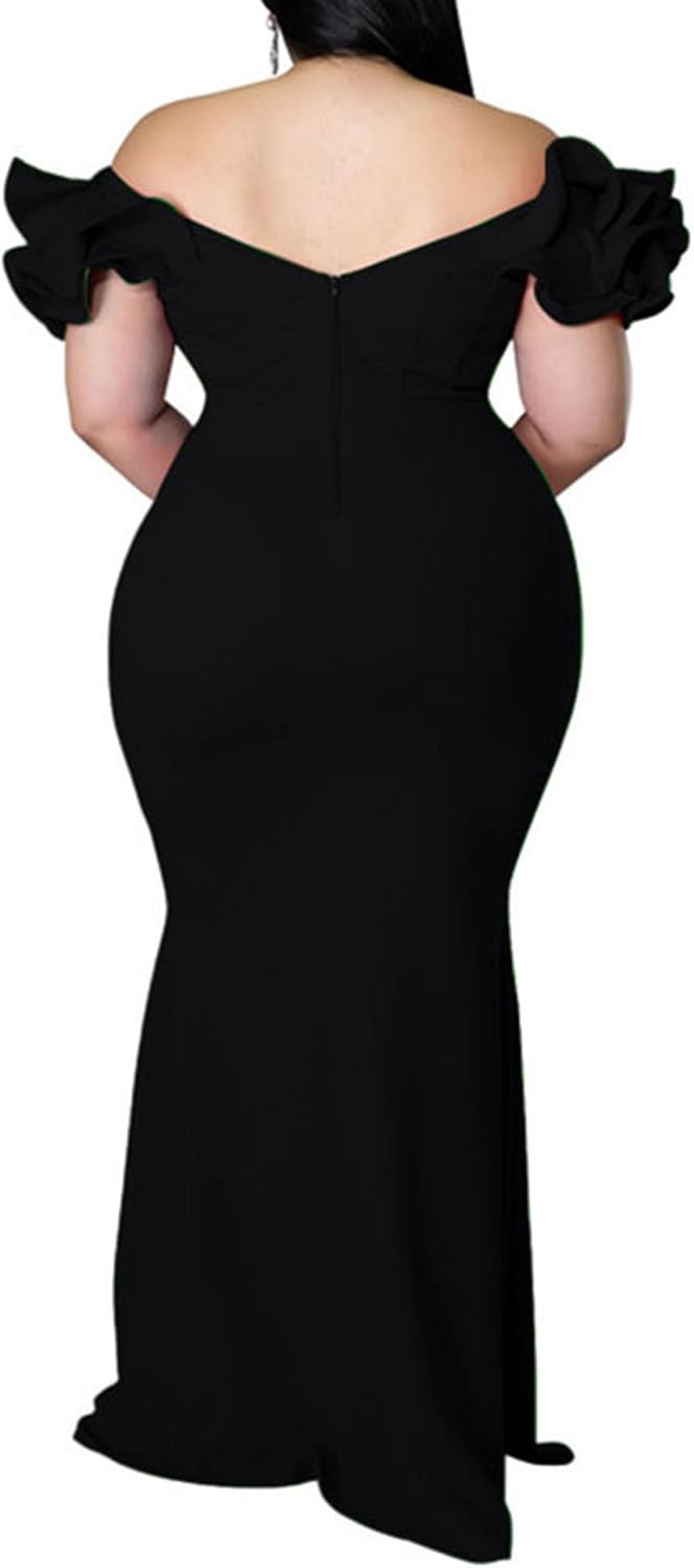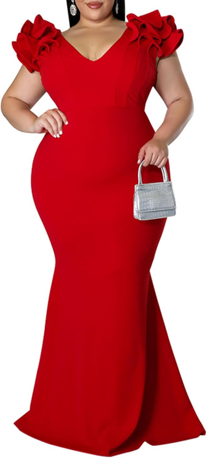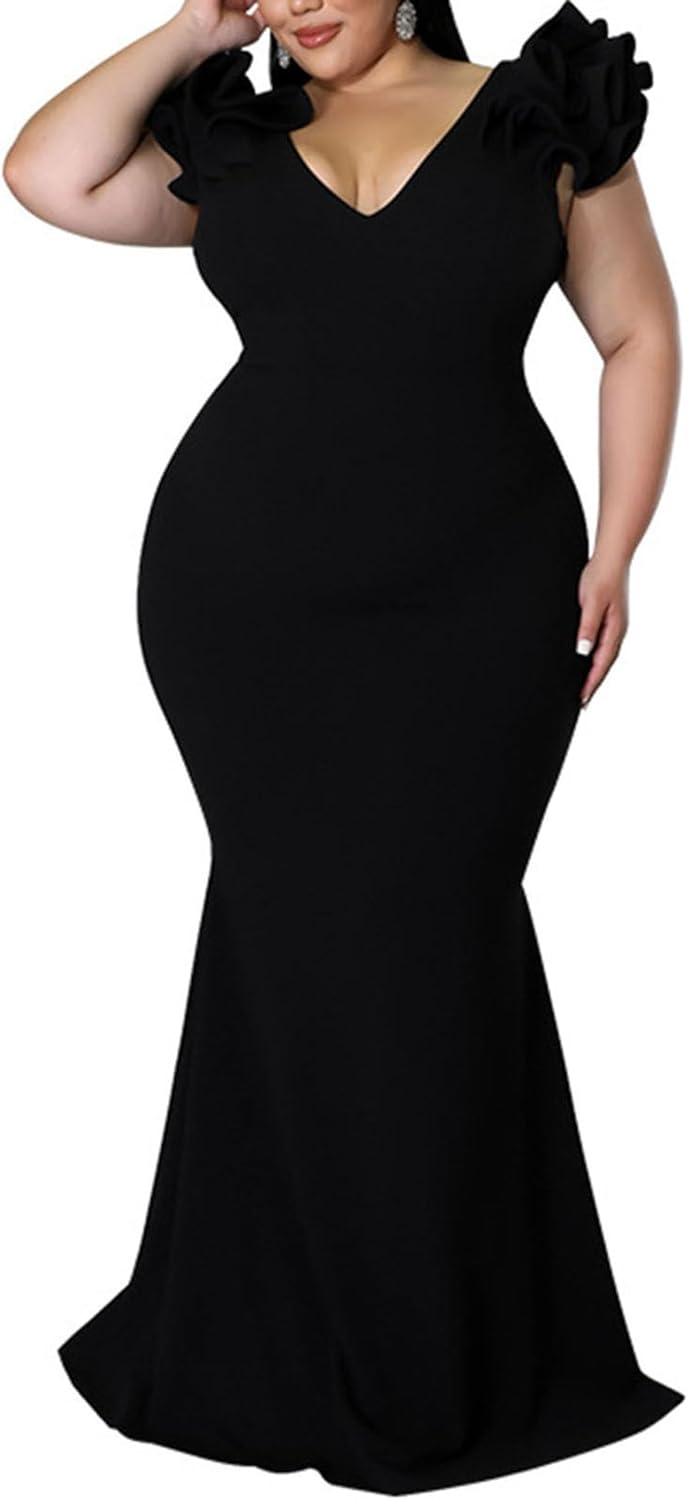 Women’s Plus Size Maxi Dress Elegant V-Neck Ruffle Sleeves Bodycon Mermaid Dresses Evening Gown