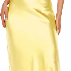 Women's Spaghetti Strap Midi Satin Silk Dresses Asymmetrical Ruffle A Line Sl…