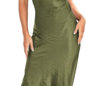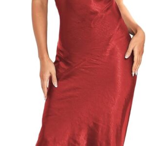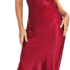 SITELUOYG Women's Elegant Mock Halter Neck Party Dress Sleeveless Satin Silk …