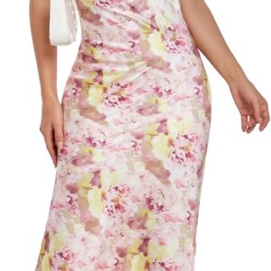 Women's One Shoulder Satin Silk Backless Split Wrap Dress