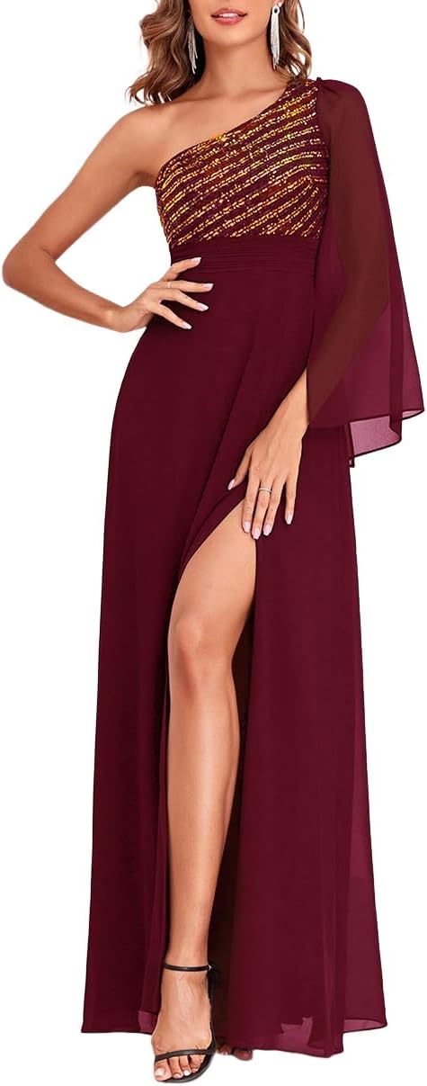 YHHOWEP Women’s Sparkly Sequin Dress Glitter One Shoulder Split Bridesmaid Cocktail Formal Evening Gowns Ball Dresses