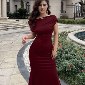 YMDUCH Women's Elegant Sleeveless Off Shoulder Bodycon Long Formal Evening Dress