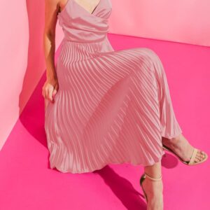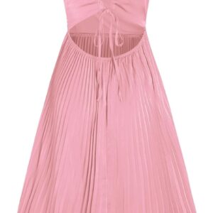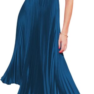 ZAFUL Womens Satin Sexy Backless Wrap V Neck Sleeveless Spaghetti Strap Pleated Flowy Party Midi Dress